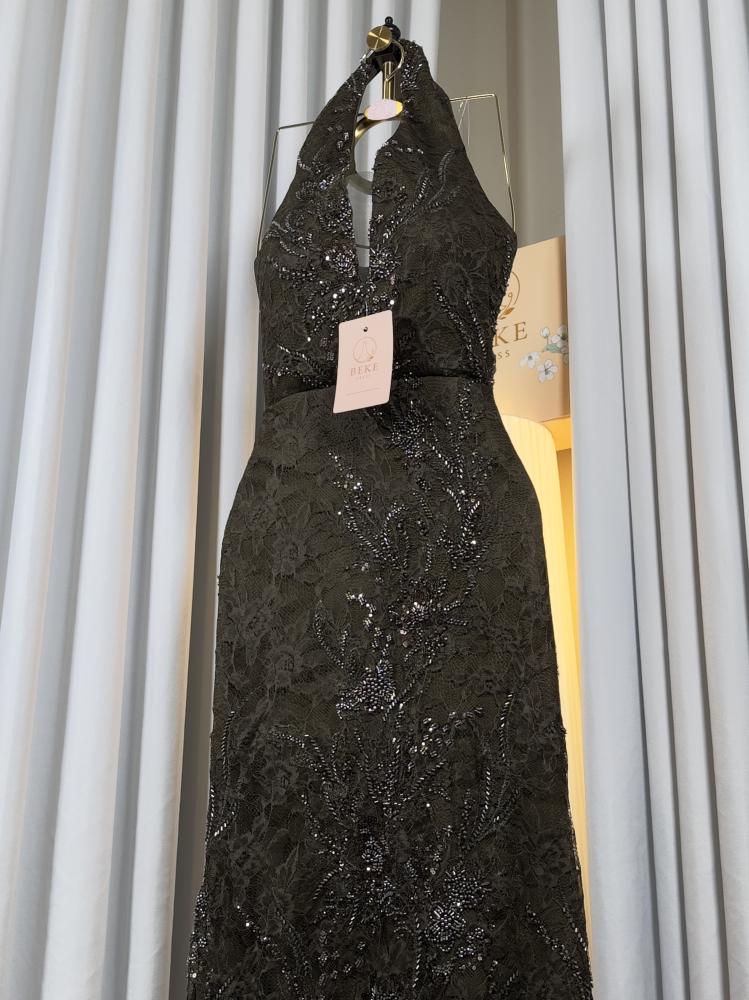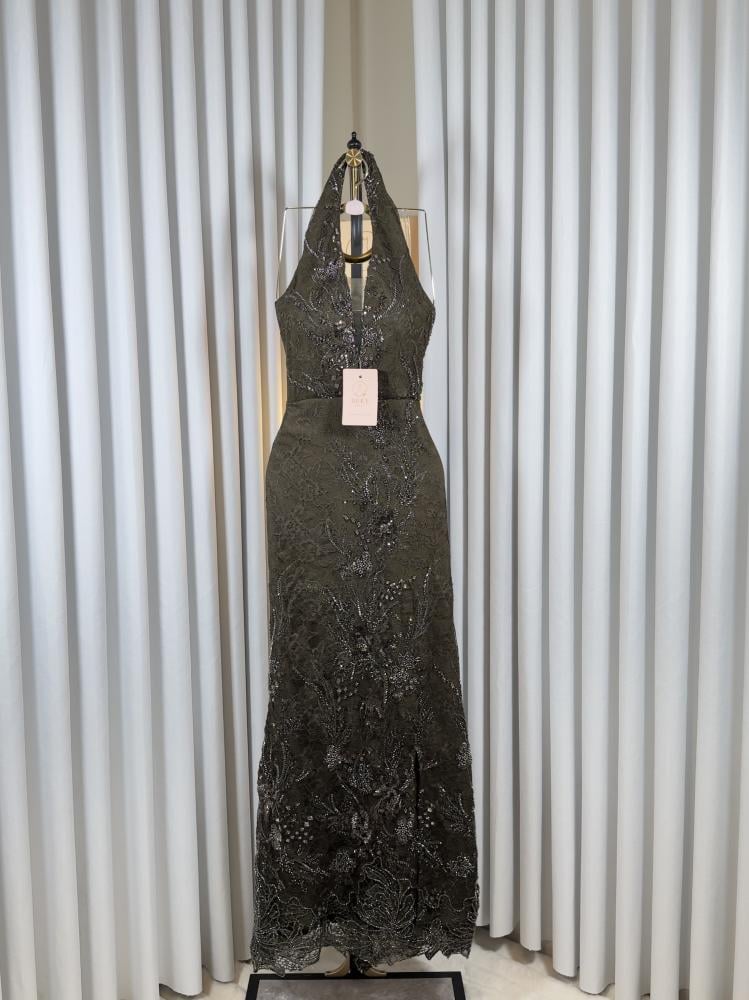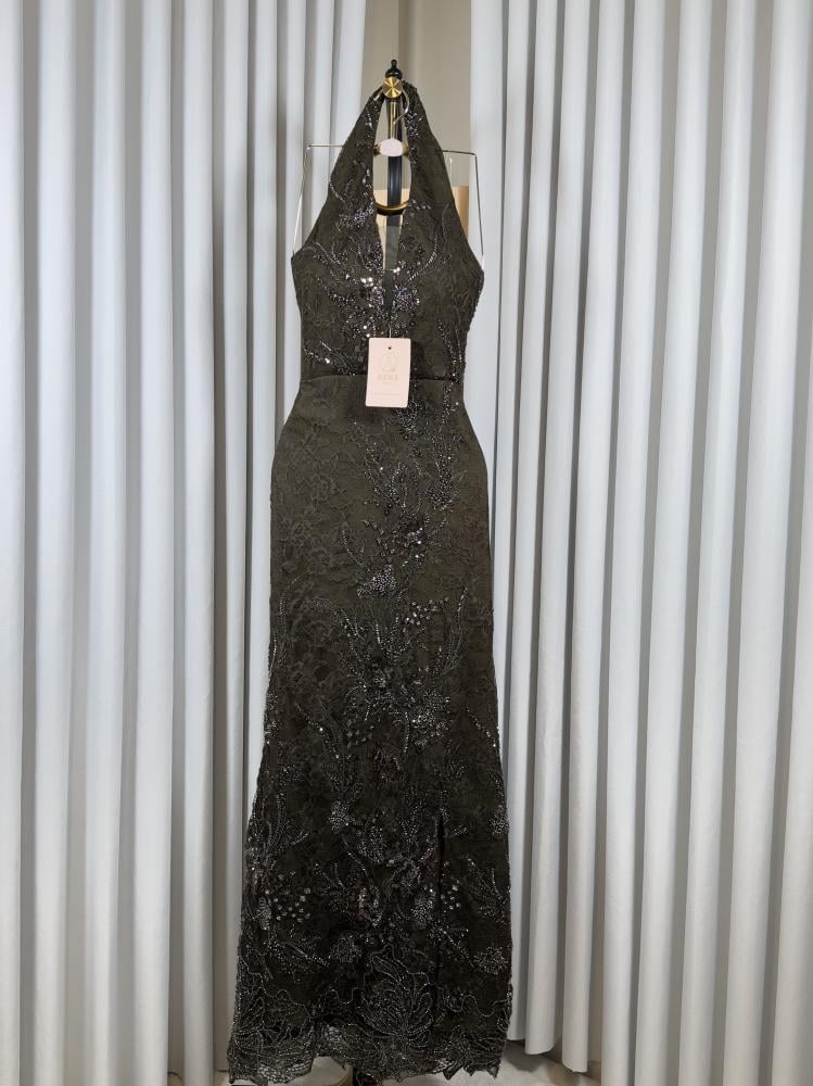 فستان سهرة أنيق بلون أخضر زيتوني فخم،