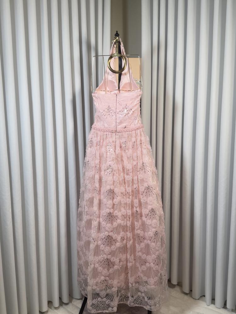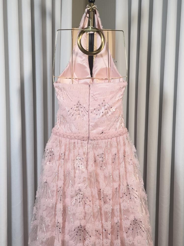فستان بتصميم هالتر كلاسيكي يبرز جمال الأكتاف والرقبة، ويعطيك طابع فخم وناعم في نفس الوقت.