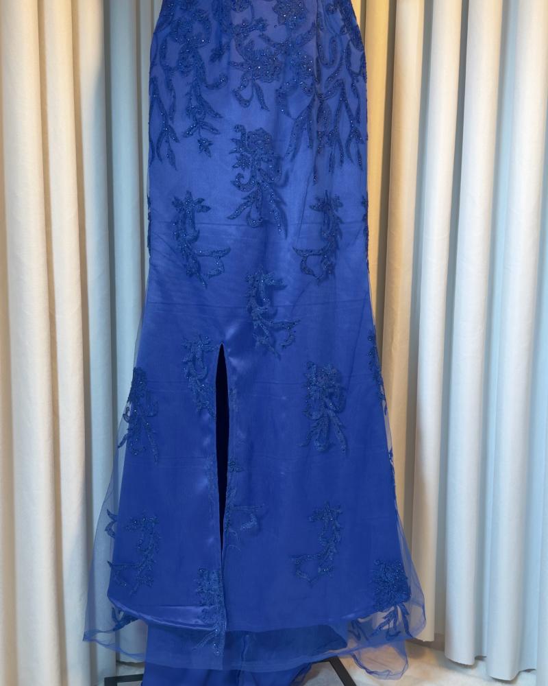 تألقي بإطلالة ساحرة مع هذا الفستان الملكي باللون الأزرق المميز،