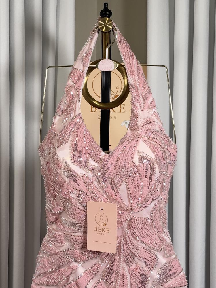 تألقي بإطلالة استثنائية مع هذا الفستان الساحر باللون الوردي الناعم،