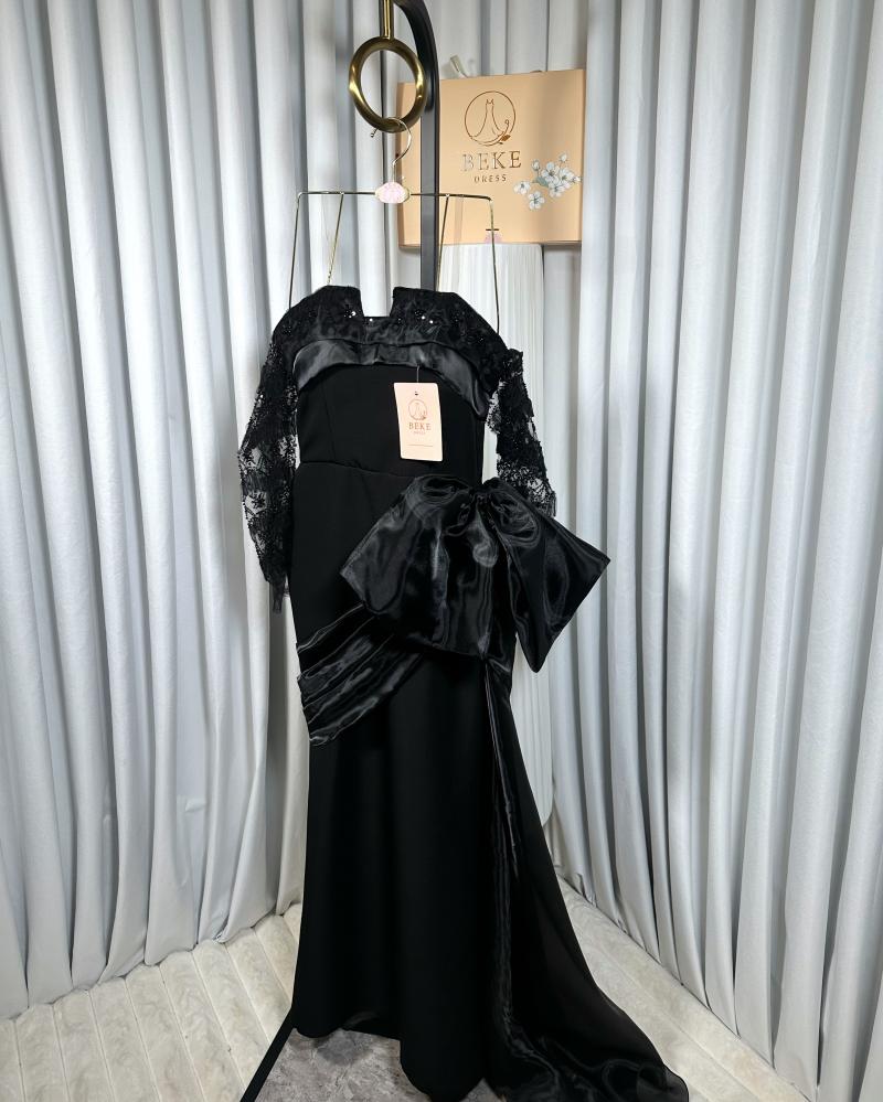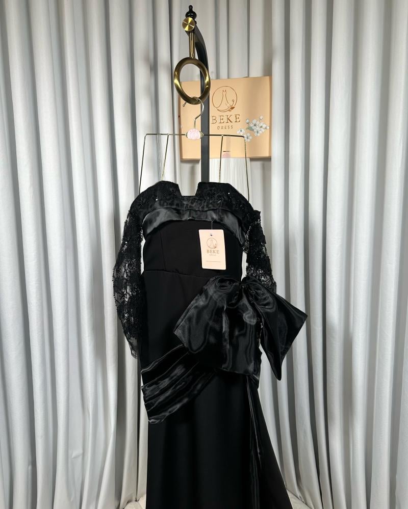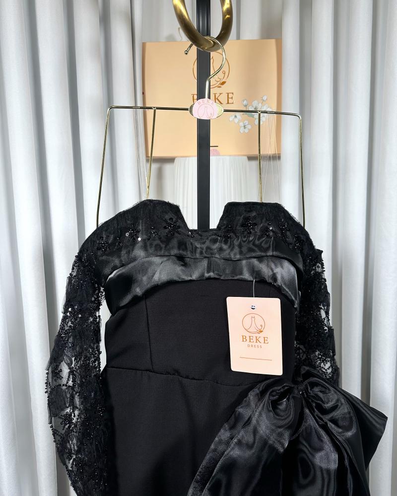 تألقي بإطلالة ملكية مع هذا الفستان الأسود الراقي الذي يجمع بين الأناقة الكلاسيكية والتفاصيل العصرية.